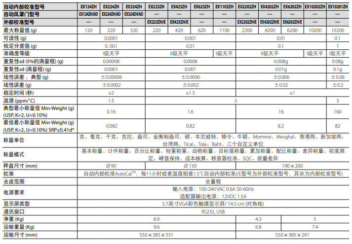 智能化的称量性能 – Explorer具有优越的称量重复性和线性,3 x 3种滤波调节能有效保证快速且稳定地得到称量结果。除了AutoCalTM自动内部校准型号外,还添加了外部校准系列。